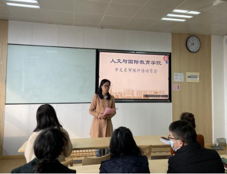 2023年2月8日上午,人文与国际教育学院中文系在1301教室召开了审核评估动员会,会议由中文系副主任庞欢主持,中文系全体教师参加了此次会议。