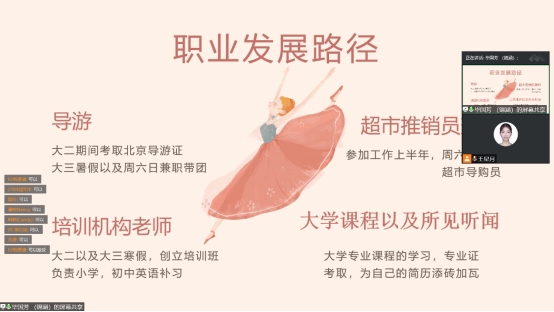 2022年12月11日晚19点至21点,外语系英语专业职业生涯规划与就业指导系列讲座第四场于线上举办。本次研讨会由阿里巴巴国际站客户经理毕国芳主讲。毕女士曾在1688的B2B业务领域工作,在工作中曾多次获得“明日之星”等荣誉称号。毕女士主要为同学们介绍了在电子商务及外贸领域的就业情况,并为同学们如何做好未来就业准备做出了指导。本次讲座由外语系英语专业教师王星月主持,英语专业21级全体学生参加。