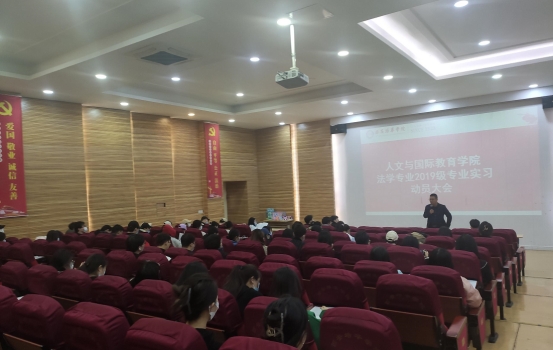 西安培华学院人文与国际教育学院法学专业2019级专业实习动员大会于2022年11月16日下午在格物楼J101举行。由人文与国际教育学院法学系马亚乐主任、张丽莎老师主持,法学系2019级学生参加。