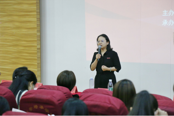 首先,人文与国际教育学院常务副院长梁蕊副教授致辞。梁院长对刘校长的到来表示热烈欢迎,并指出在中文系为接轨用人单位对人才的需求,培养一专多能的应用型复合型人才的背景下,迫切期待像刘校长这样的一线名师,为我们的师生提供方法和指明方向。
