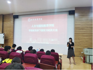 为保证学前教育专业学生全面了解今年专业实习的安排和注意事项,做好专业实习准备工作,为之后的就业打好基础。2022年6月1日中午13:00在格物楼J101阶梯教室,西安培华学院人文与国际教育学院学前教育系对2021级专升本全体学生召开了专业实习动员大会。由学前教育系教师李林娜主持。
