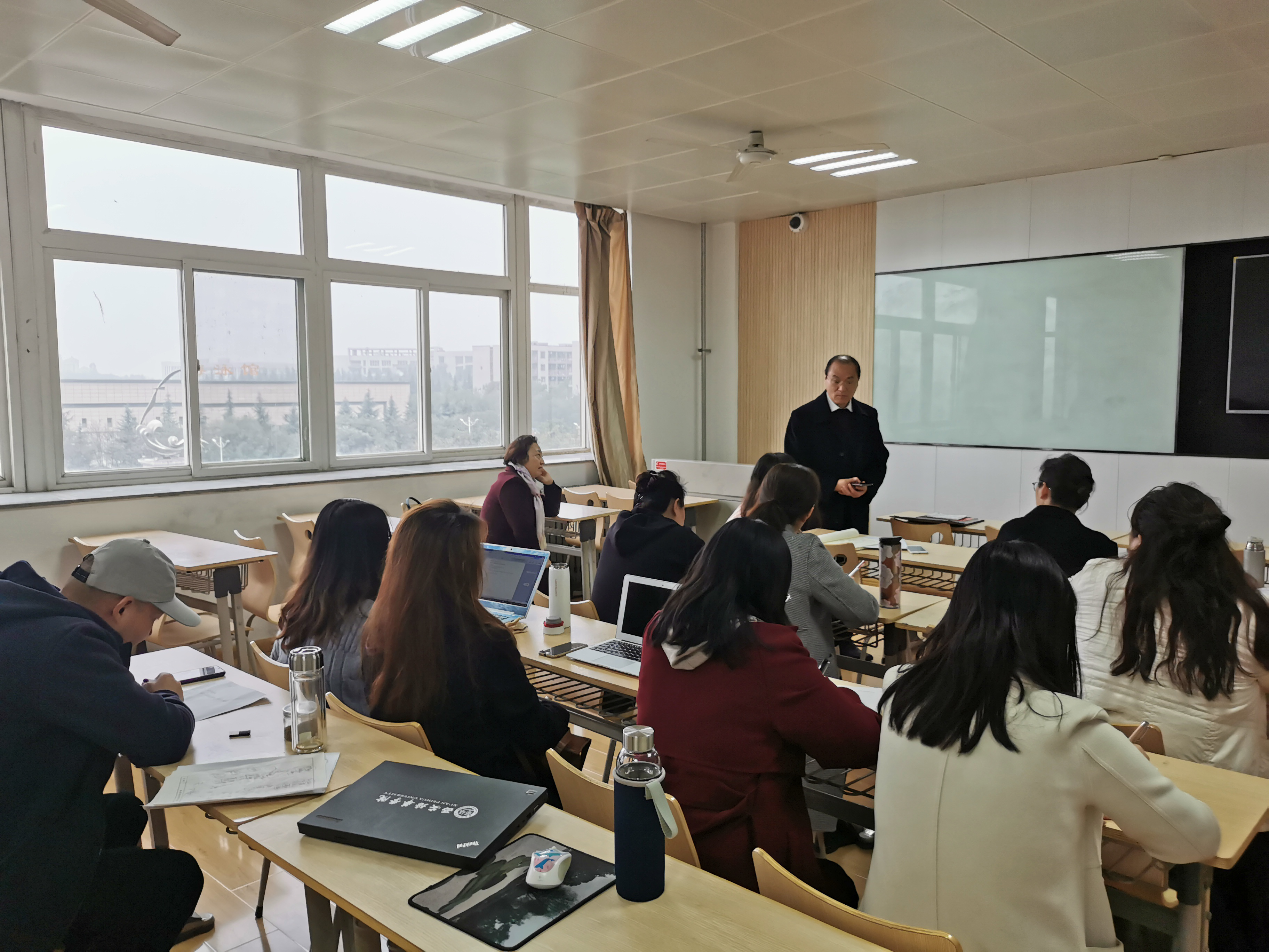 随后,刘云航老师提出了18级教育方向学生的实习安排问题,大家讨论了具体的安排与实施。首先刘云航老师介绍了教育方向学生的实习基地新增了唯一一所英语专业新增的初中教学基地--沣西中学,以及18级专业教育方向学生需进行为期2周的见习活动(校内及校外),最后对于校内部分与全体教师进行了共同探讨其安排部署,决定从三笔字、简笔画以及英文歌曲三个方面以比赛的方式进行见习,帮助学生掌握作为英语教师的实操技能。