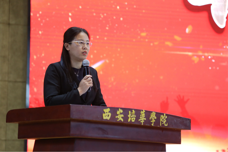 西安培华学院学术委员会主席、学位评定委员会主席、西安培华学院副校长刘越莲教授讲到:仰望星空必须脚踏实地,要逐步建立自信,管好自己,不能放任自己,创造属于自己的辉煌。同时希望大家在大学里学会学习、学会思考、学会生活。努力做有用的人、做成功的人、成为国家栋梁的人。