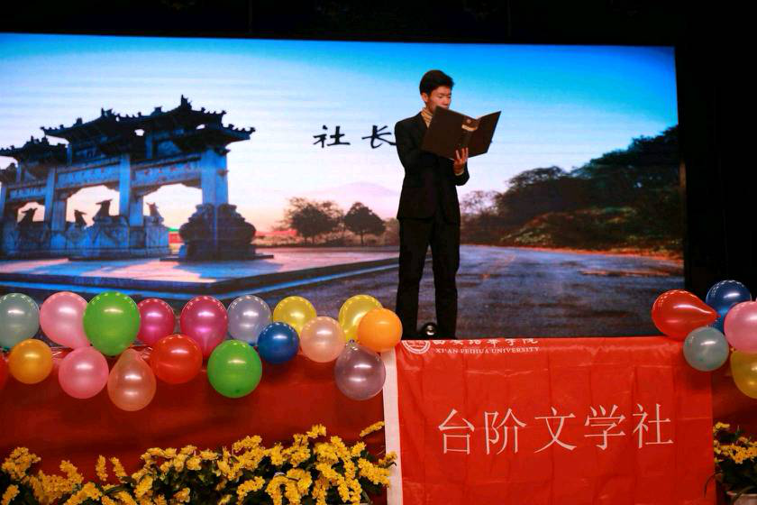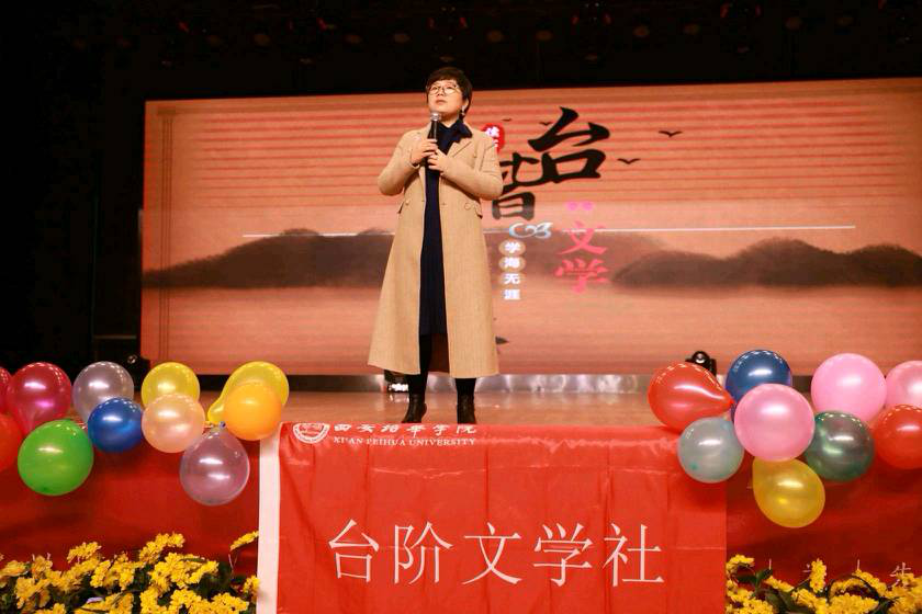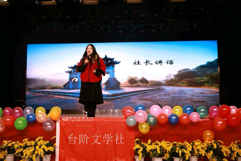 活动伊始,由蔡亮书记讲话,他感谢各位到场的嘉宾,肯定了台阶文学社过去取得的成绩,对未来发展的提出期待。几个精彩的节目之后,中文系副主任罗妮老师讲话,阐述了台阶20年发展历程,希望台阶向着既有的目标更好地前行。