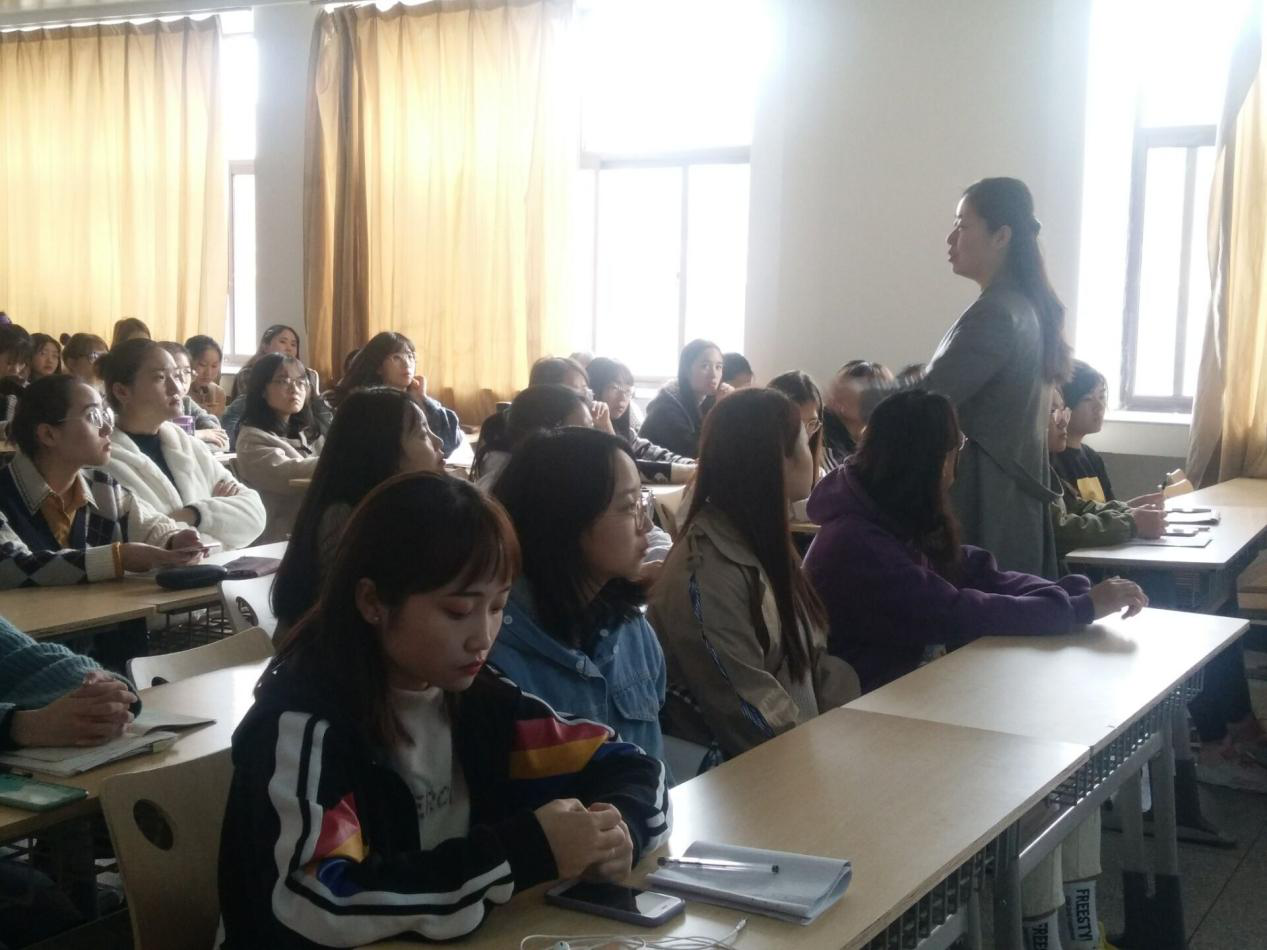 马荣琴副教授激情洋溢的给同学们讲解四级口语考试的方法和技巧