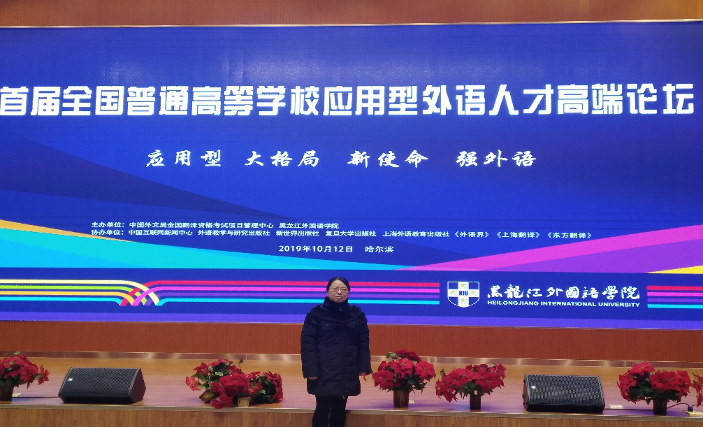 10月11日-14日,我院外语系教师曹艳琴受邀参加在黑龙江省哈尔滨市举办的首届全国应用型本科英语人才高端论坛。此次论坛由中国外文局全国法院资格考试项目管理中心和黑龙江外国语学院共同主办,与会专家和学者就新建本科院校外语专业硕士研究生培养模式、“一带一路”给中国外语人才培养带来的机遇、新技术时代外语人才的培训和考核、人工智能对外语人才培养的冲击与对策等问题进行了广泛的交流和讨论。
