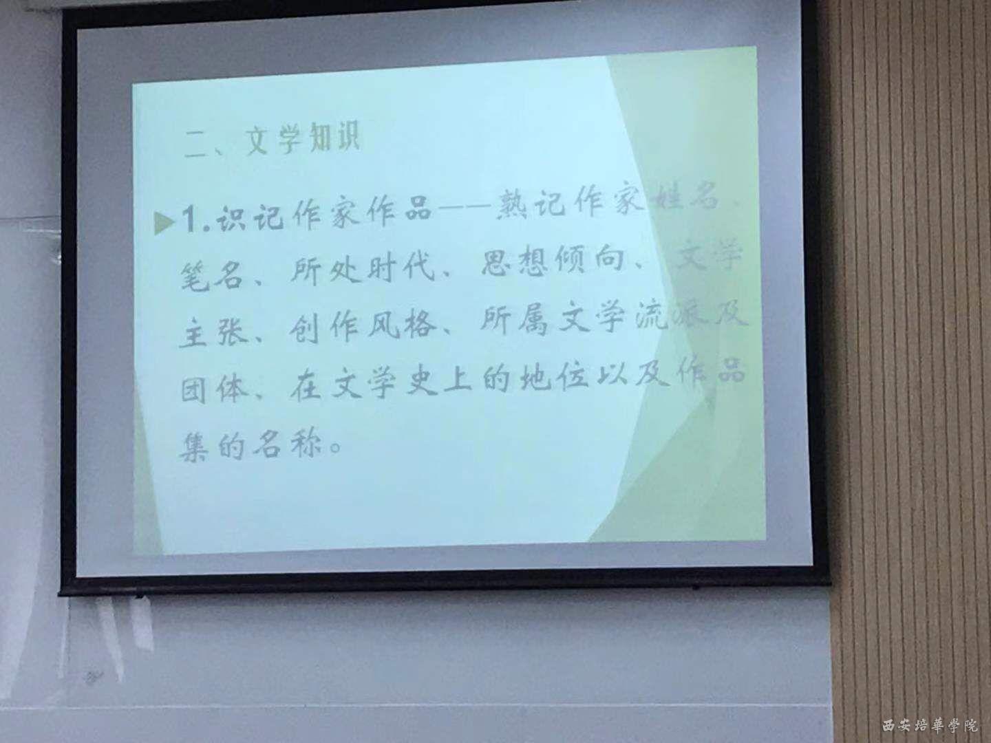 接着,陈老师从语言知识、文学知识、文体知识、课文阅读分析、作文五个方面,全面地讲解了专升本的出题类型和重点识记内容,内容齐全,分析准确到位,为准备参加专升本考试的同学理清了头绪,梳理了考试复习的条理。
