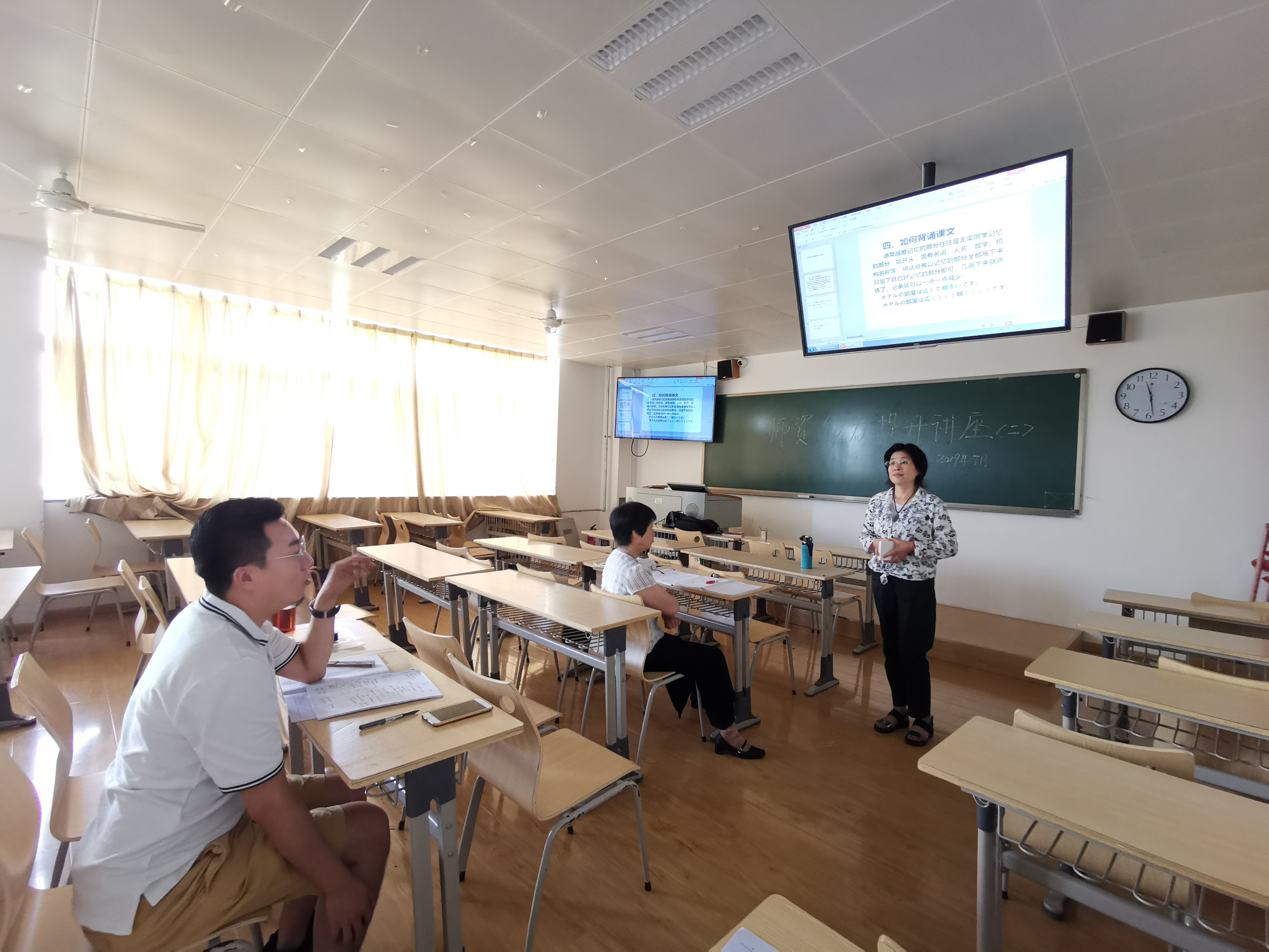 继五月份的日语专业师资能力提升讲座之后,2019年7月4日早上再次邀请西北大学邓秀梅副教授为日语教师进行了基础日语教学的专题讲座。