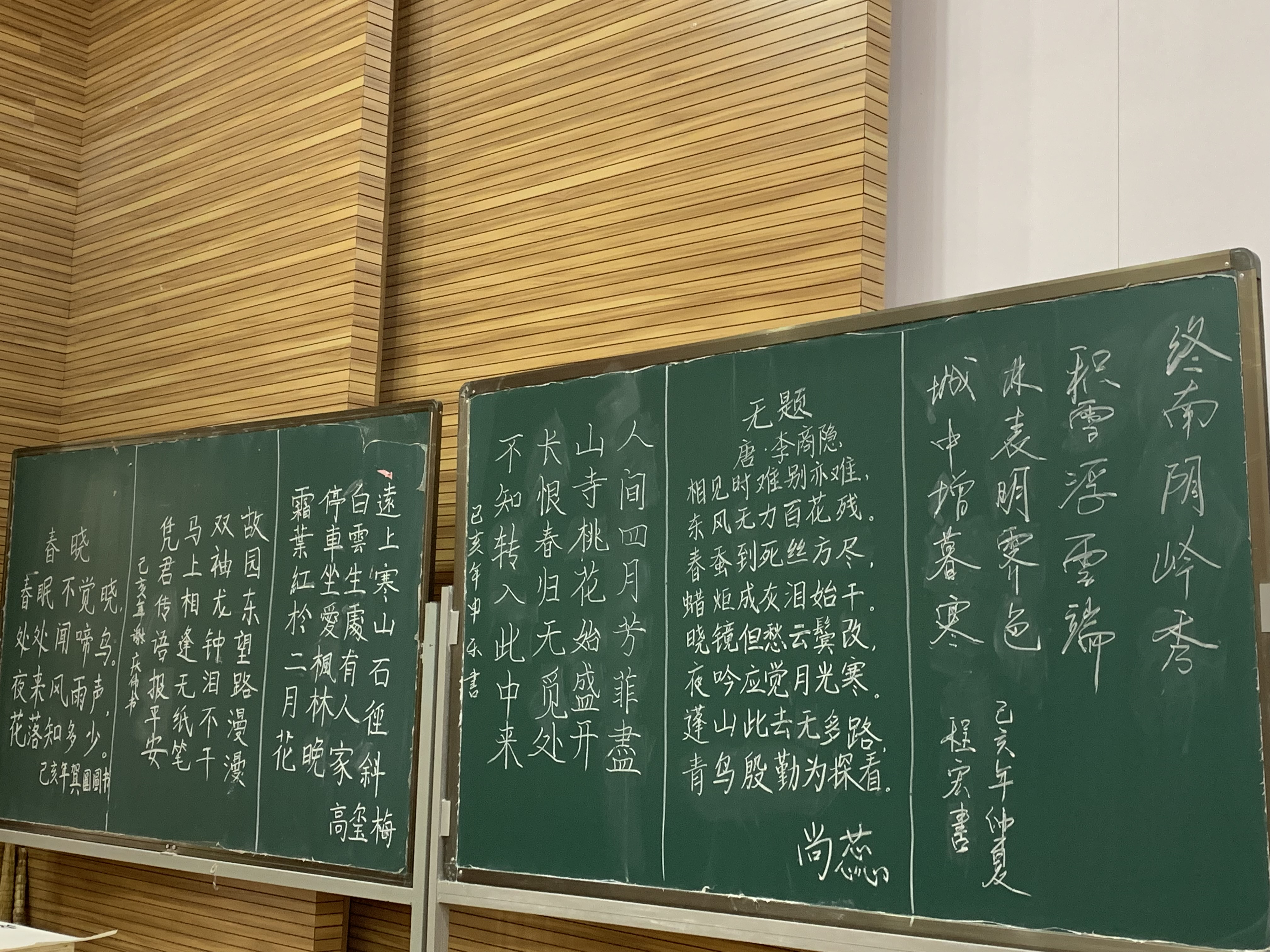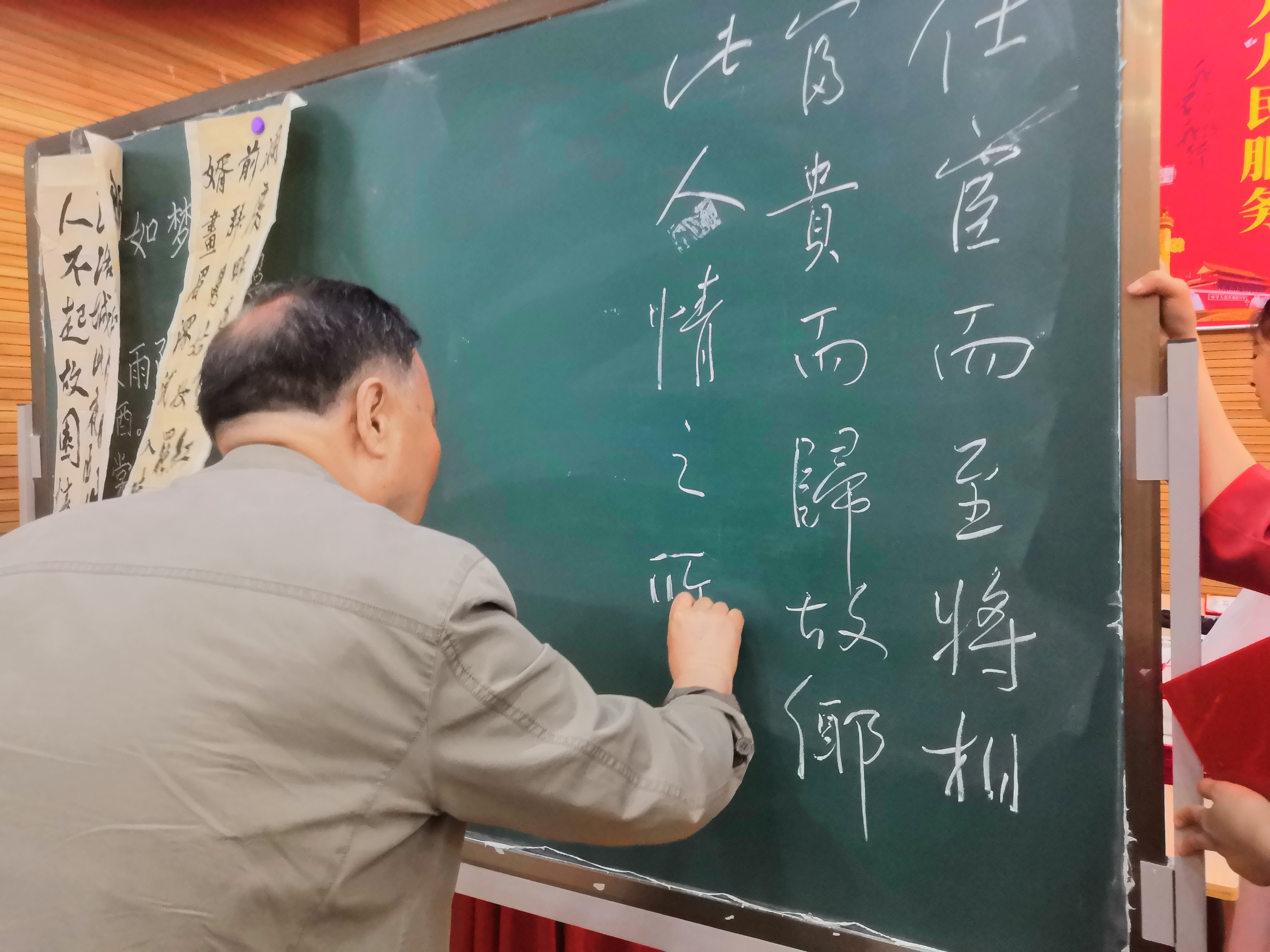 中文系主任张静老师也对作品做了点评,希望同学们好好练字,将来成为一名真正合格的老师。王相民老师亲自上阵,在现场为同学们展示了粉笔字的书写。