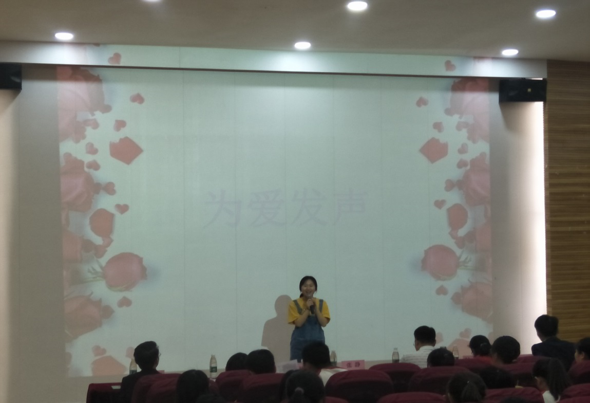 选手依次进行作品展示十名选手与“华声初上”成员合作,团队成员深情朗读决赛作品。经过第一轮的比拼,钱星宇等六名同学脱颖而出。第二轮的比赛,由选手自行陈述作品精神内核,评委老师进行打分。算分期间,比赛现场进行了“为爱发声”环节,多位与会学生与老师们都大胆为爱发声,陈述了自己的经历或为爱表白,收获掌声无数。