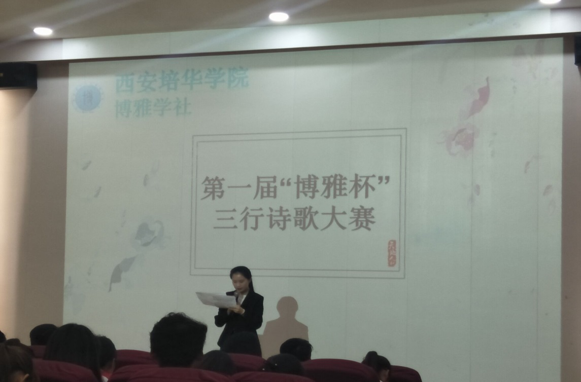 掬一捧月光酿酒,倾尽半生的颓唐;研一盏细霜入墨,将毕生沧桑临摹。2019年5月24日中午12:20,西安培华学院首届“博雅杯”三行诗歌大赛的决赛在J101拉开帷幕。担任本次比赛的评委有:人文与国际教育学院中文系的张静老师、付丽伟老师、桑盛荣老师、石庆周老师和薛红娟老师。此外,来到决赛现场的还有汉语言文学专业2017级和2018级的学生代表共170余人。