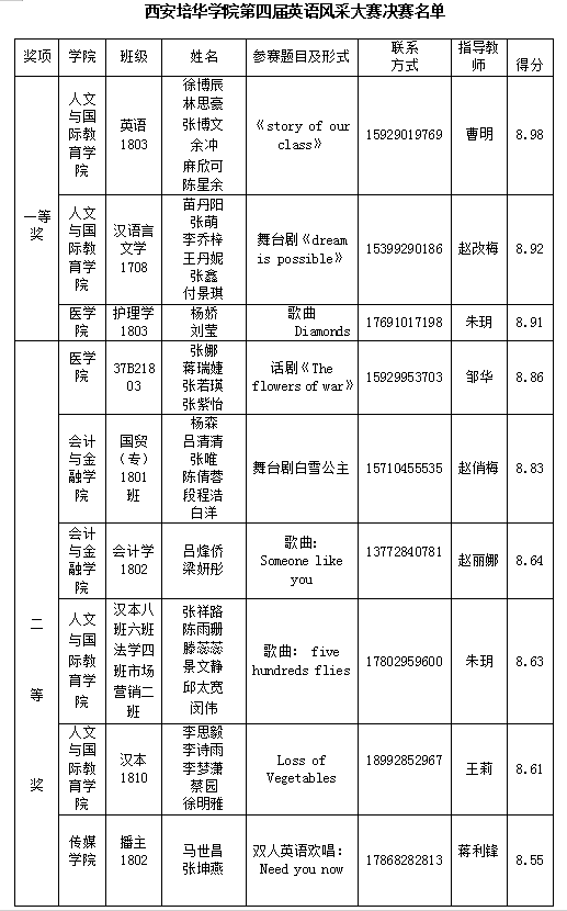 西安培华学院第四届大学生英语风采大赛圆满落幕
