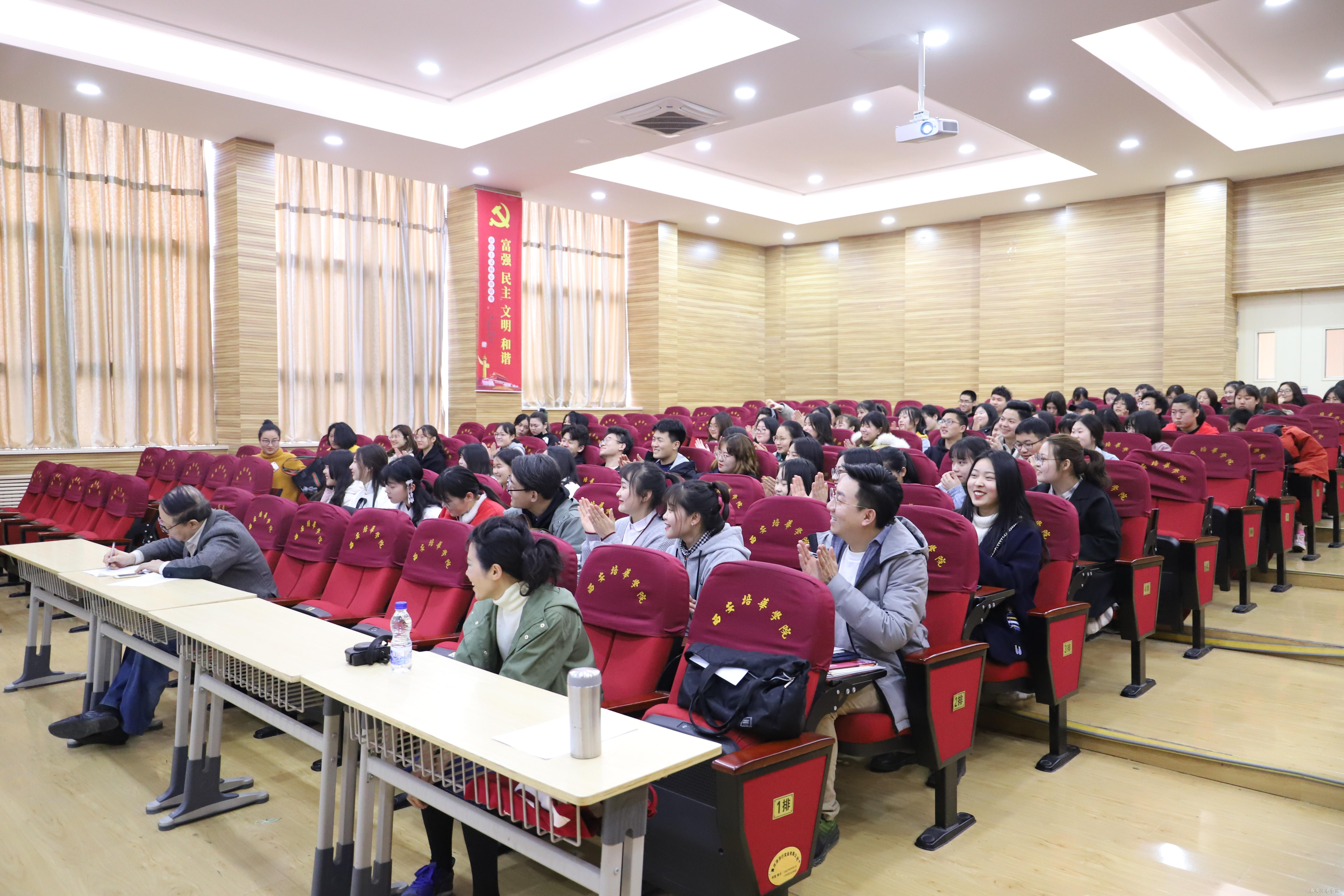讲座中,同学们对福井老师运用详实的资料和图景的讲述表现出极大的兴趣,话至精妙处,会场里就会响起同学们会意的笑声。在提问答疑阶段,同学们积极主动提问,福井老师一一作了细致的解答。最后同学们以热烈的掌声向福井老师的精彩演讲表示了感谢。