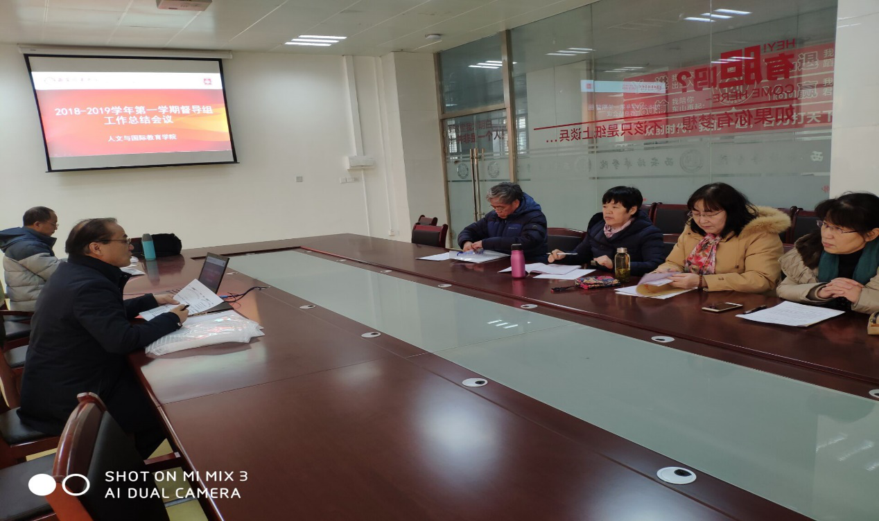 2019年1月2日下午2:30,人文与国际教育学院在格物楼一楼第四会议室组织召开了本院2018-2019学年第一学期教学督导工作总结会议。督导组组长甘世安教授、副组长刘迎接副教授、督导专员李霞教授、凌苏霞副教授、王相民教授、闵敏副教授和粟滢副教授参加了会议。