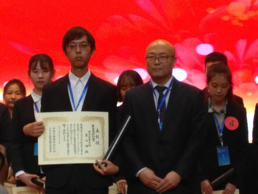 我院外语系日语专业二年级的李泽坤同学参加了此次才能展示比赛。经过短期紧张严格的准备和苦练,李泽坤同学经过上午作文竞赛之后,在下午的登台演讲展示才能的过程中表现良好,充满自信,口头表达流畅自如,最终获得了优秀奖。他的作文成绩取得第一部第三名的好成绩。同时,日语专业曹长春老师荣获大赛优秀指导教师奖。