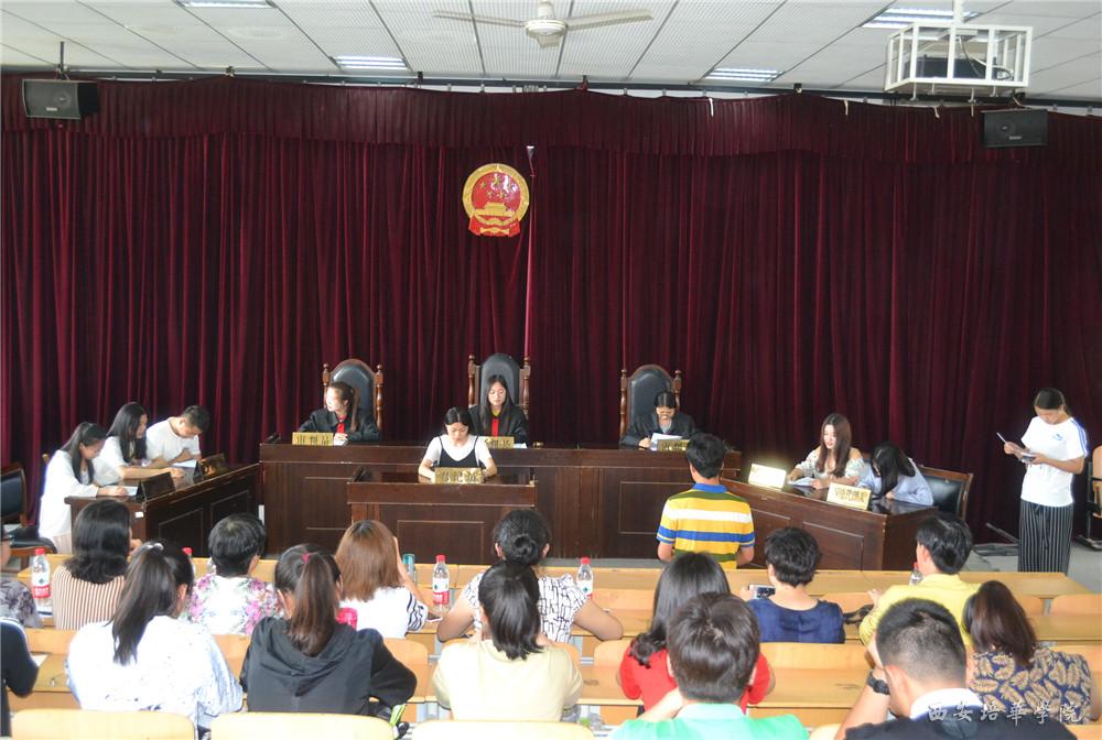 为了提升我院法学专业学生的法律素质,促进同学们更好地熟悉审判程序,人文与国际教育学院法学系于 2018年6月20号下午2:00在育英楼3507模拟法庭教室举行了第三届模拟审判大赛决赛。