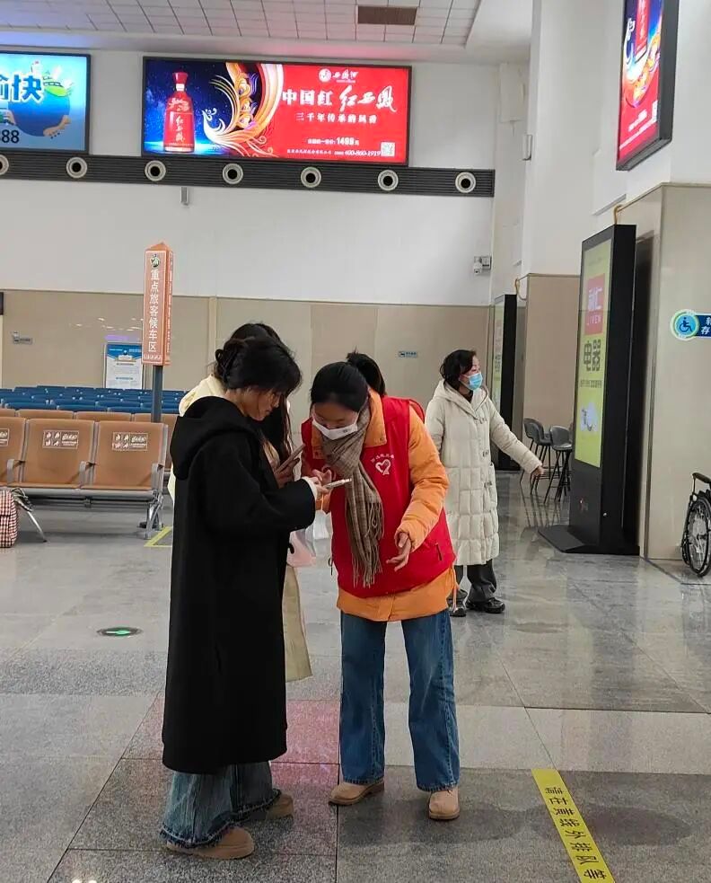 张丹在高铁站志愿服务旅客