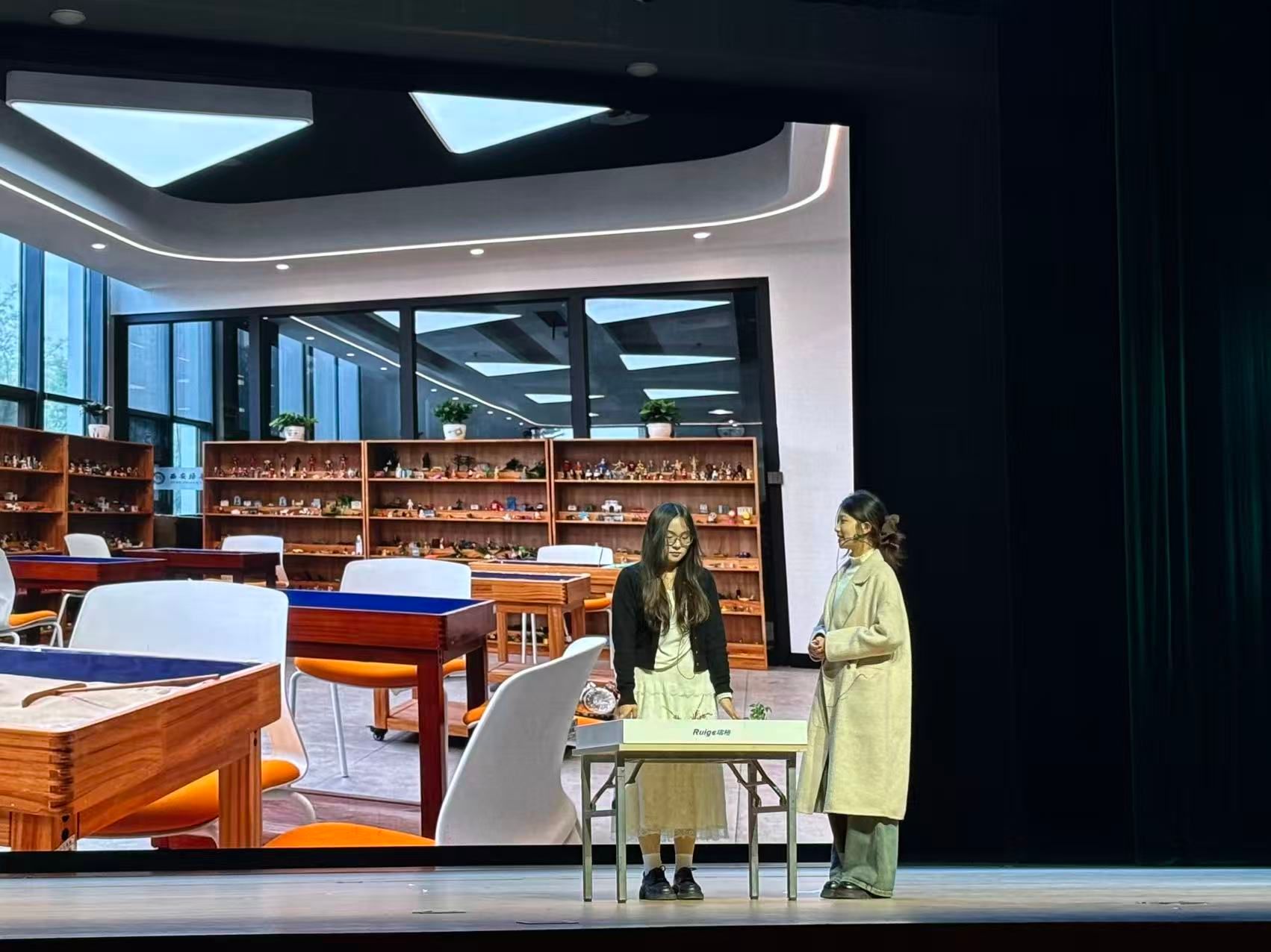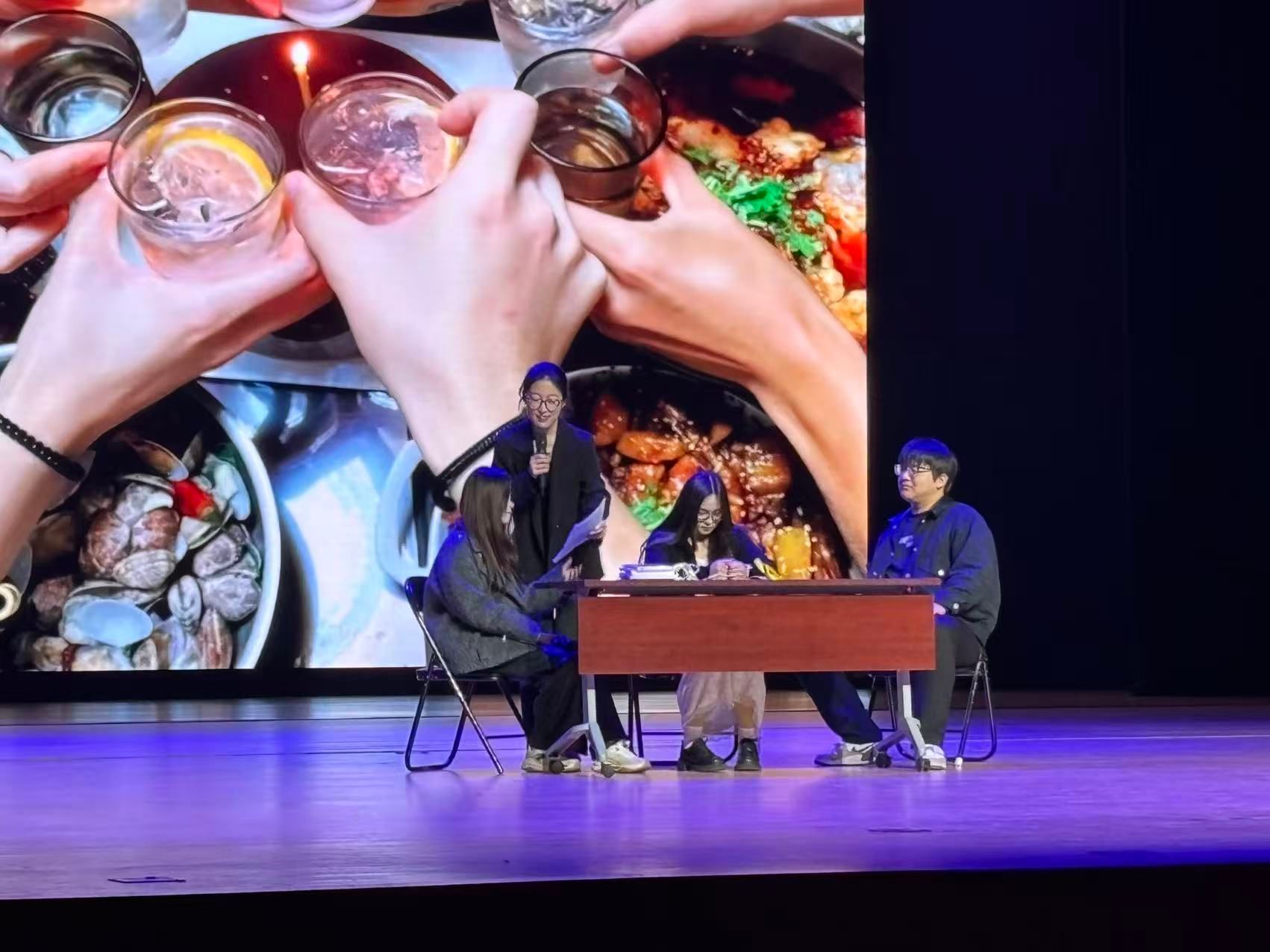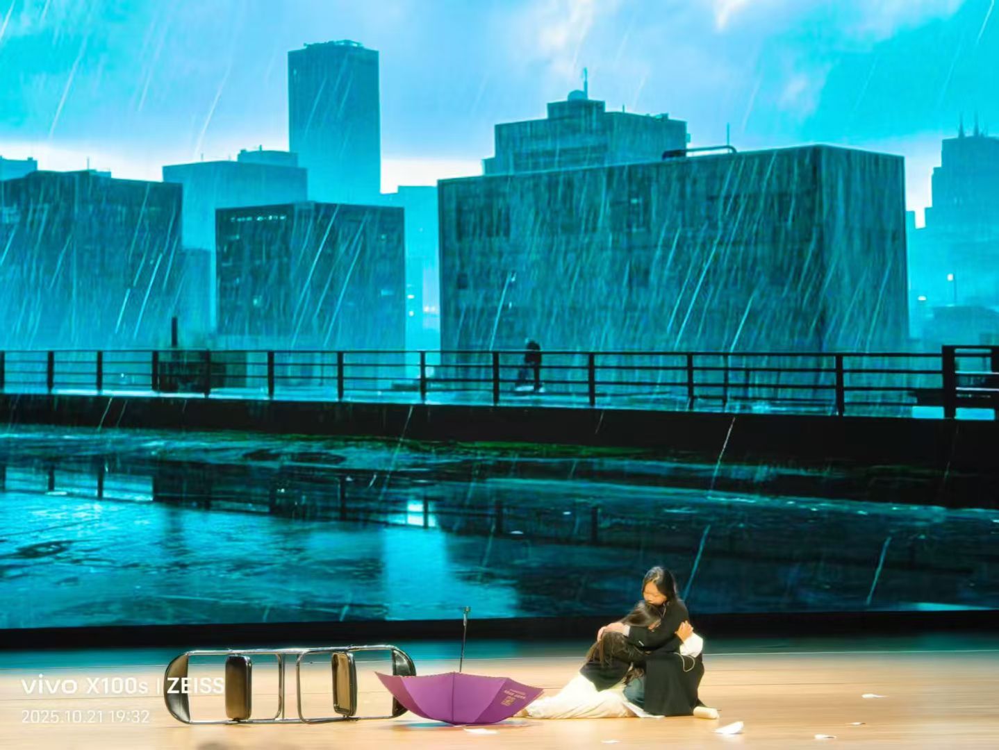刘嘉雯、马米茹、王渺渺、纪诗悦等主演以扎实演技,细腻呈现角色从彷徨到自信的蜕变。道具组同学默默准备着关键道具——那只象征陪伴的玩偶、承载压力的书桌,在转场间隙迅速抬桌搬凳,用无声的默契搭建起一个个真实场景。当大幕落下,他们又悄悄留下,细心打扫着现场的每一处角落,用行动为这场心灵盛宴画上温暖句点。后台精准配合的灯光及PPT播放,生动营造出家庭环境的窒息、天台的惊险、雨夜无助的焦点氛围,台前幕后的同心协力,让高潮段落引发全场强烈共鸣,掌声经久不息。