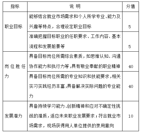 考查学生树立生涯发展理念并合理设定职业目标、围绕实现目标持续行动并不断调整的成长过程,通过学习实践提升综 合素质和专业能力,体现正确的择业就业观念。参赛学生可获得实习机会。