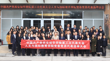 中国共产党西安培华学院第三次代表大会人文与国际教育学院党委党员代表选举大会于2023年12月11日12:30在格物楼J101举行。本次大会选举产生人文与国际教育学院出席我校第三次党代会的34名师生党员代表。本次大会由学院党委书记南兵主持,学院全体教工党员及部分学生党员代表参加。