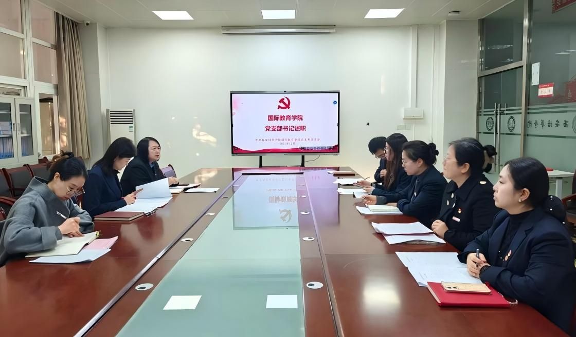 为深入学习贯彻习近平新时代中国特色社会主义思想,全面落实新时代党的建设总要求和新时代党的组织路线,切实加强基层党组织建设,根据《中共西安培华学院委员会关于开展2025年度党组织书记抓基层党建工作述职评议考核的通知》,国际教育学院党总支于2025年12月29日上午10:00在格物楼第四会议室,召开支部书记2025年党建工作述职会。本次述职会由国际教育学院党总支书记何丽主持,学院党总支委员、各师生党支部书记参会。