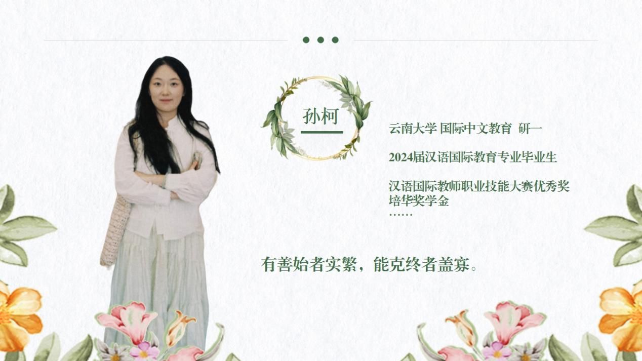 随后,孙柯学姐也分享了自己的考研故事。她结合自己报考国际中文教育专业的经历,重点讲述了如何选择适合自己的院校和专业、如何高效备考专业课以及如何在复试中脱颖而出。她提到,考研不仅是对知识的考察,更是对个人综合素质的考验。她鼓励同学们在备考过程中要注重全面发展,提升自己的表达能力和应变能力,为复试做好充分准备。