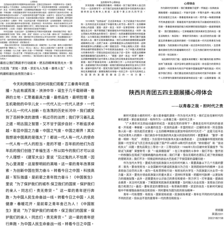 此次五四主题展播结束以后,我院青年学子有感而发,写下了他们自己的学习感悟。以青春之我建设青春之中国,中国青年的力量如星星之火,在复兴中华的道路上定现燎原之势!