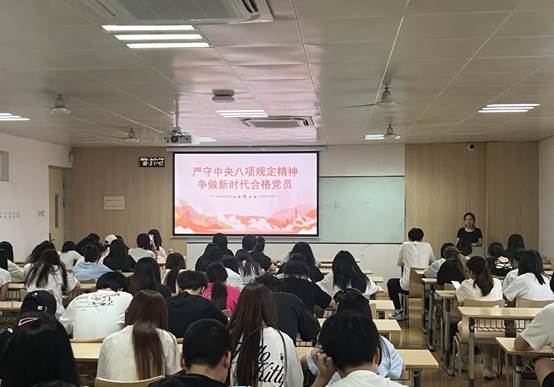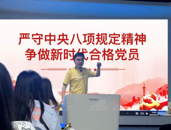 学院党委副书记高嘉炜以“严守中央八项规定精神,争做新时代合格党员”为主题,为学生党员代表进行了专题党课。他通过丰富的案例和生动的讲解,引导党员们深刻认识到中央八项规定精神的重要意义,激励大家在日常工作中以更高的标准严格要求自己,争做新时代的合格党员。