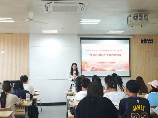 为深入贯彻落实中央八项规定精神,进一步加强党员作风建设,人文与国际教育学院党委书记及各党支部书记于5、6月开展了深入学习中央八项规定精神专题党课。