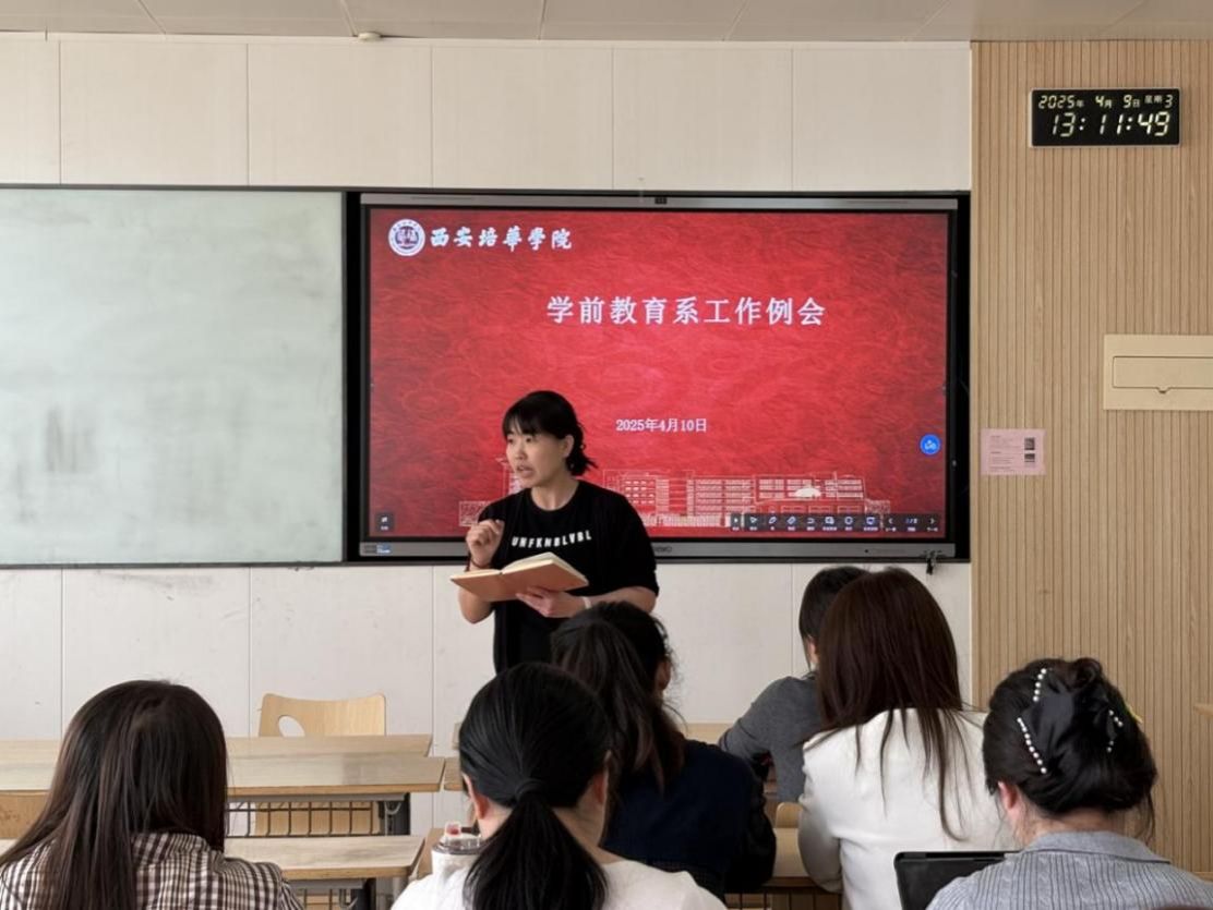 为深入贯彻落实新时代教育评价改革要求,全面提升学前教育专业建设质量,4月10日中午,学前教育系在格物楼1301教室召开月度工作例会,会议聚焦学前教育专业认证筹备进展与最新课程大纲修订工作,围绕专业建设核心任务展开深入研讨,凝聚共识、明确方向和工作办法。会议由系副主任王斯文主持,王璐露主任主讲,系部全体专任教师参会。