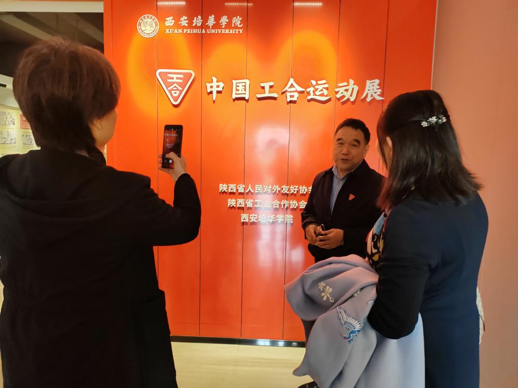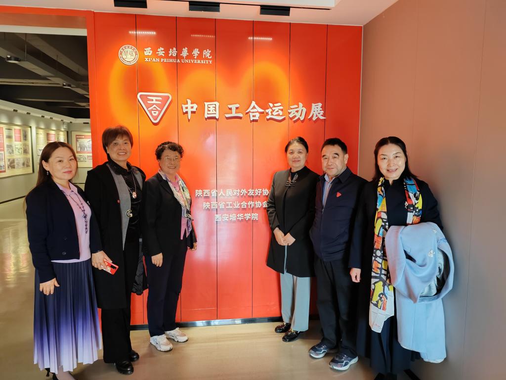 经陕西省志愿服务联合会会长,西安培华学院女子学院副院长班理介绍,2023年11月6日中午,陕西省妇联原二级巡视员,陕西省社会组织国际交流促进会副会长陈小江,陕西省委党校(行政学院)学员三部副主任、妇委会副主任田雅萍教授,延安市文联主席、延安木兰书院创办人孙文芳,长安区文旅局党委副书记李贤梅等一行来参观设在西安培华学院的“中国工合运动图片展”。