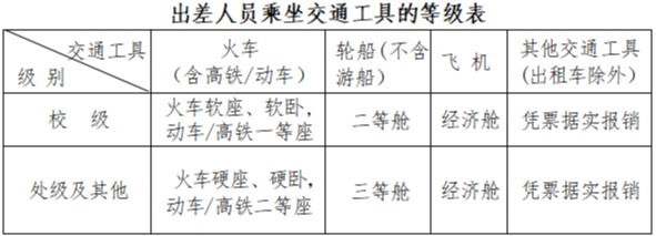 第五条  到出差目的地有多种交通工具可选择时,出差人员 在不影响公务、确保安全的前提下,按照规定等级优先选乘经济 便捷的交通工具,出差结束后,凭票据实报销城市间交通费。