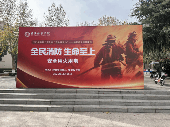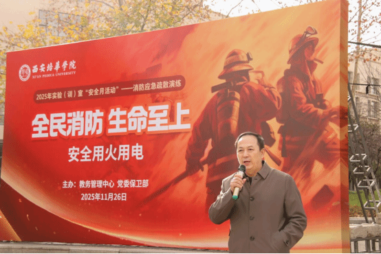 为贯彻落实陕西省教育厅《关于开展2025年全省教育消防宣传月活动的通知》《关于做好2025年度高等学校实验室安全工作的通知》系统的文件精神,11月26日下午,后勤服务中心联合教务管理中心组织开展“全民消防 生命至上—— 安全用火用电”为主题的实验(训)室消防应急疏散演练活动。常务副校长胡俊生、实验管理中心负责人宁生科、党委保卫部主任助理杜谋涛、各二级学院实验中心主任、实验室管理人员、实验指导教师代表共70余人。