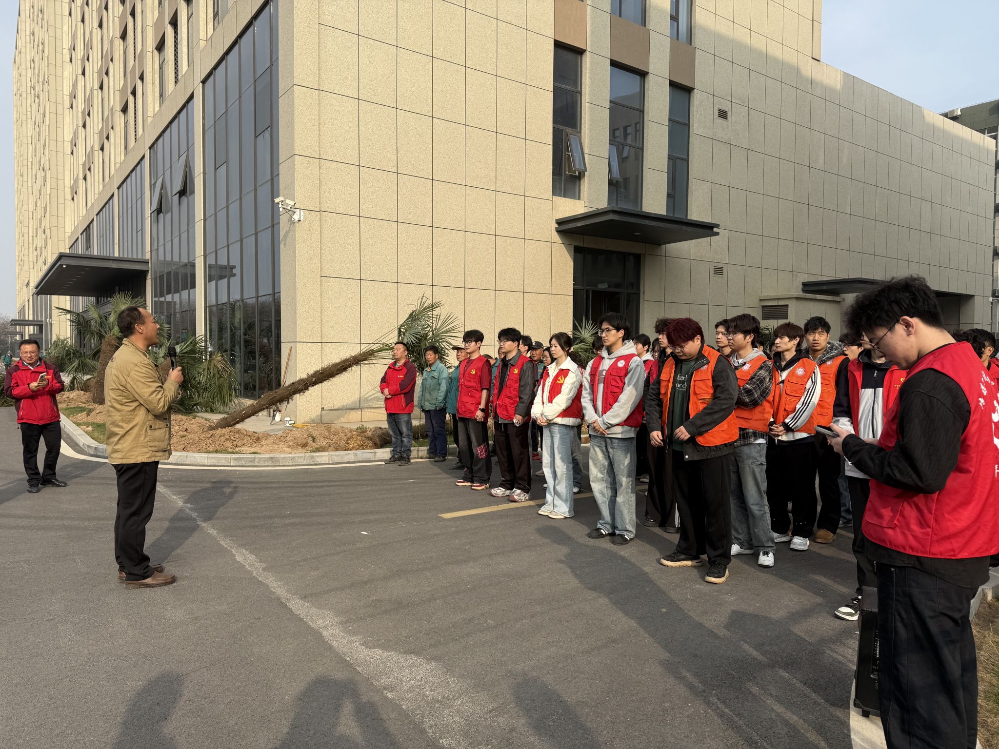 活动当天,志愿者们分工协作、默契配合,挥锹挖坑、扶苗定植、培土围堰、提水浇灌,严格按照绿化养护标准规范操作,确保苗木栽种规范、成活率高。现场一派热火朝天的劳动景象,春日暖阳下,一株株新苗迎风挺立,为校园增添了勃勃生机。