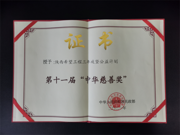 “陕西希望工程三年攻坚公益计划”荣获中国慈善最高奖--中华慈善奖