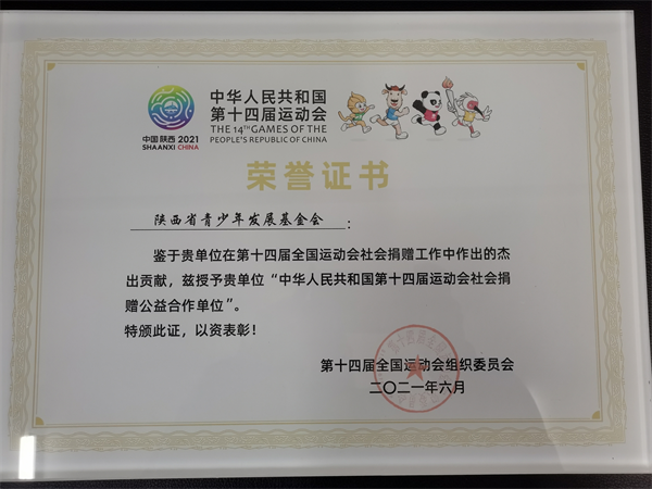 十年来,累计募集捐款捐物价值3.8亿元人民币,公益服务覆盖陕西107个县市区,惠及百万青少年。省青基会组织开展的“陕西希望工程三年攻坚公益计划”荣获中国慈善最高奖--中华慈善奖;作为唯一合作公益机构,协助全国十四运组委会募集资金物资2350万元,助力十四运成功举办,被十四运组委会授予《中华人民共和国第十四届运动会社会捐赠公益合作单位》;组织实施的《希望工程互联网+微公益》《爱心100助学行动》公益项目荣获“陕西第二届‘三秦慈善奖——最具影响力慈善项目奖’”殊荣;联合发起的《童步益行——给乡村娃一双运动鞋”公益项目荣获全国网信办“因爱同行”2019网络公益年度项目奖,策划实施“抗击疫情,希望同行”等11个公益项目分别荣获2018、2019、2020、2021年陕西省网络公益优秀精品项目奖、陕西好网民工程品牌奖;被陕西省委宣传部授予“陕西省学雷锋活动示范点”。