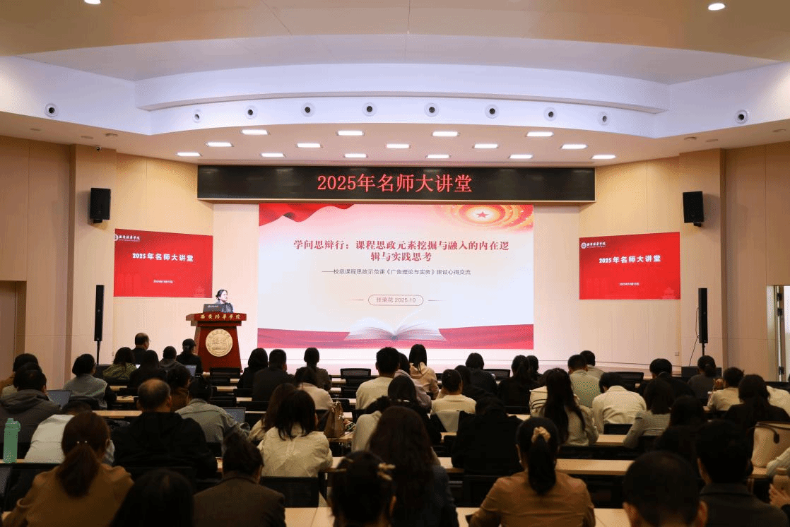 “广告人首先要做价值‘守门人’。”张荣花副教授现场展示学生作品:一组以“非遗活化”为题的公益广告,从调研、创意到投放,全程嵌入马克思主义新闻观,实现知识传递与价值塑造同频共振。讲座尾声,她邀请在场教师扫码加入“学问思辨行”协同教研社区,发出“让每一门课都开出一朵思政之花”的倡议。