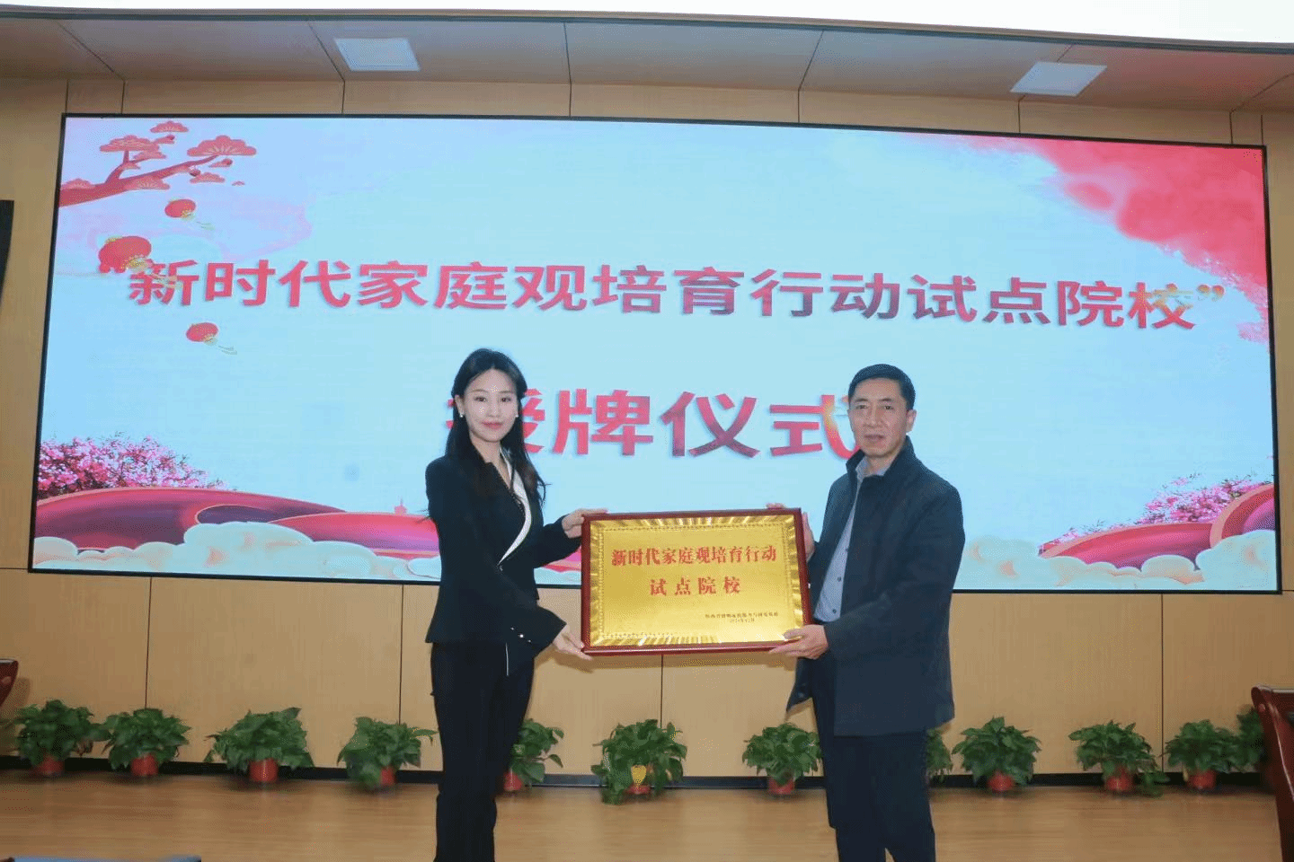现场举行了“新时代家庭观培育行动试点院校”授牌仪式,省基地负责人李蒙为商洛职业技术学院授牌。