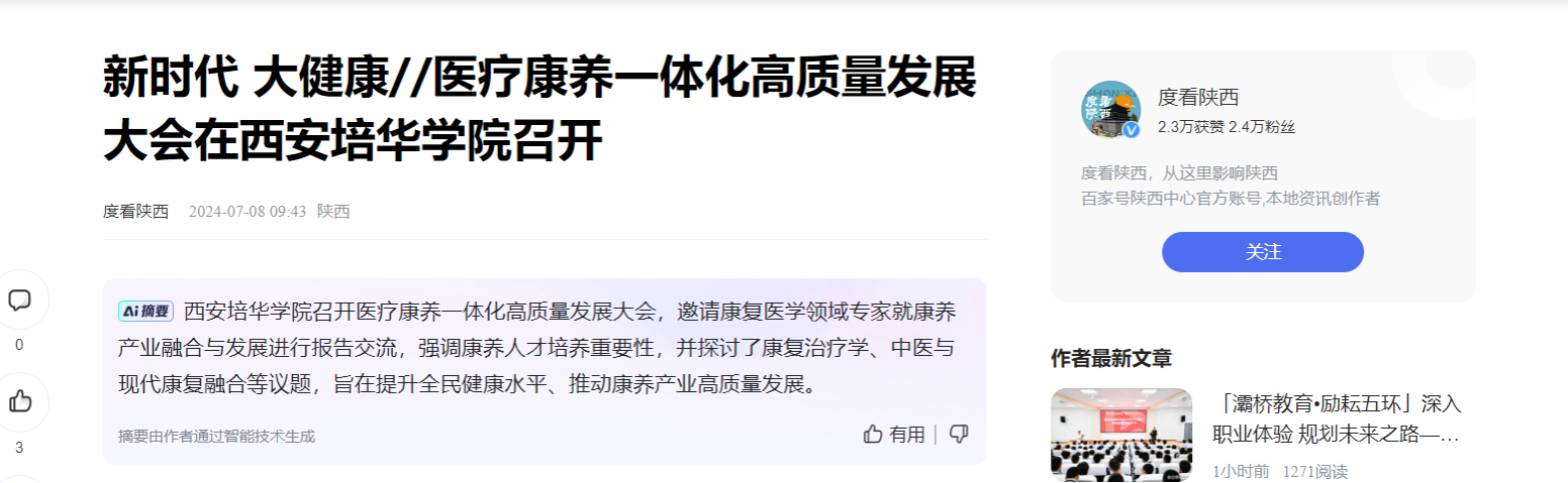 会议特别邀请国内长期深耕于康复医学领域的名师大家和康复机构的领导进行主题报告,旨在探讨和推动医疗康养产业的深度融合与高质量发展。大会还邀请省内高等医学类院校、医院和康复行业共计三十余家,西安培华学院理事长姜波博士、学校高级顾问孙振霖教授、副校长兼医学院院长于国亮教授、附属医院、教学医院、实习医院、医学院全体教工和学生代表及体育学院领导和教师,共计300余人参加了会议。