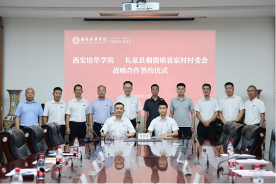 7月4日下午,西安培华学院与礼泉县袁家村战略合作签约仪式在明德楼第一会议室成功举行。全国人大代表、袁家村党支部书记郭占武,袁家村市场开发部负责人郭洪威,袁家村线上运营中心负责人酒润驰、袁家村曲江创意谷副店长董逍遥,西安培华学院理事长姜波,副校长罗新远,校长助理姜涛,合作发展中心主任柳雨、副主任刘斌,后勤服务中心主任张静远出席仪式。仪式由西安培华学院校长助理秦海锋主持。