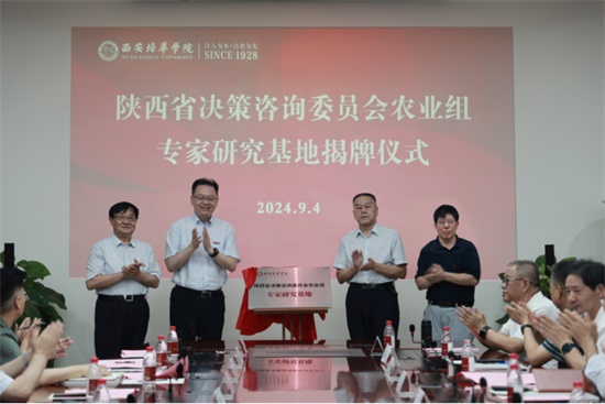 随后,在双方领导见证下,举行了陕西省决策咨询委员会民生组、农业组专家研究基地揭牌仪式。省决策咨询委员会副主任李进权,省决咨委民生组组长、陕西省社科院原副院长石英,省决咨委农业组组长、陕西村社发展促进会名誉会长郑梦熊,西安培华学院校长李映方分别揭牌。