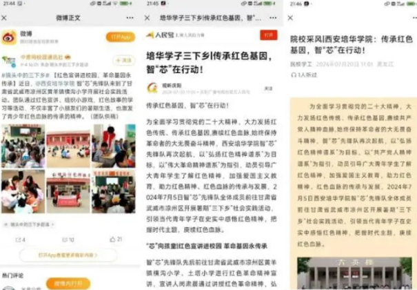 依托学校、学院、社区以及各街道办,开展红色延安精神的宣讲,开展红色寻访,用切身体验感染青年,感受延安精神,广泛开展宣讲28次,收获网络调查问卷1000余份,撰写调研报告1篇,同时,开展红色寻访,用切身体验感染青年,感受延安精神,利用微信公众号、抖音等新媒体平台推送延安红色知识普及,团队稿件先后被中青校园、人民日报、搜影中国、民校学工等媒体转载报道。