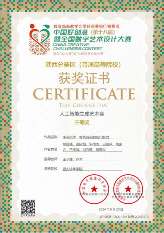 近日,第18届中国好创意暨全国数字艺术设计大赛评审结果公布。西安培华学院师生团队成绩喜人,共计获得奖项15项,其中国赛二等奖2项,国赛三等奖2项,省赛一等奖1项,省赛二等奖4项,省赛三等奖6项。