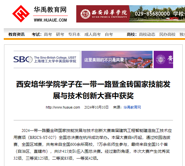 西安培华学院智能科学与工程学院本次参赛取得的成绩,不仅证明了参赛学生的专业能力和技能水平,也体现了学院在培养高素质技术技能人才方面所作出的努力和取得的成果,将有助于师生大力弘扬工匠精神,促进社会对劳动和技能的重视,推动职业教育高质量发展,为社会培养更多优秀的应用型专门人才。后续,学校将继续以学科竞赛为抓手,进一步加强学科专业建设和教学改革创新,提升学生实践能力和创新思维,为国家建筑事业高质量发展培养更多的优秀人才。