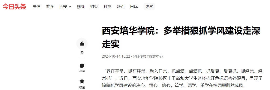 “养在平常、抓在经常、融入日常,抓点滴、点滴抓,抓反复、反复抓,抓经常、经常抓”,近日,西安培华学院校区主干道和大学生各楼栋红色标语格外醒目,呈现了该院抓学风建设的决心、恒心、信心,笃学、愿学、乐学在校园里蔚然成风。
