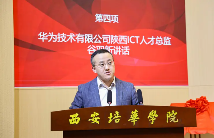 华为技术有限公司陕西ICT人才总监谷羽新介绍了华为ICT领域成果,他表示双方将继续深化合作,共同推动ICT产业的发展。