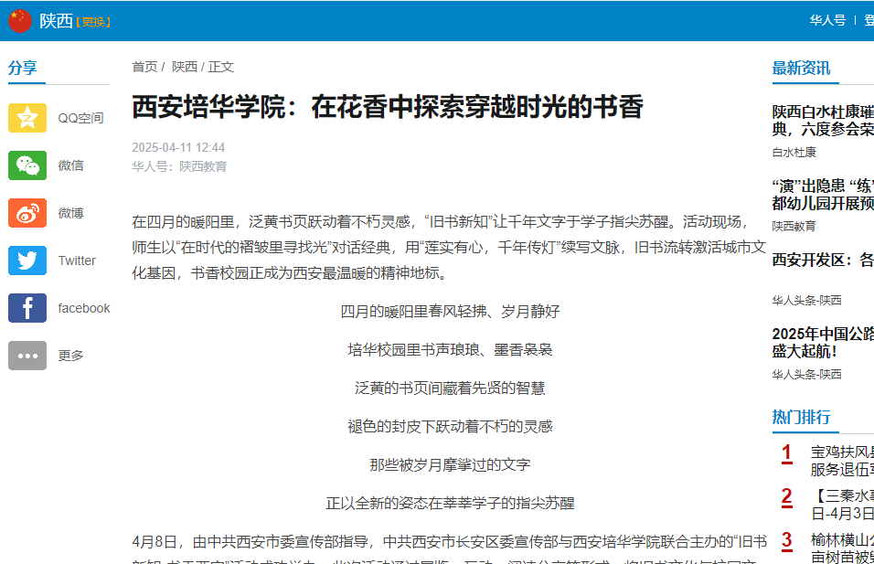 在四月的暖阳里,泛黄书页跃动着不朽灵感,“旧书新知”让千年文字于学子指尖苏醒。活动现场,师生以“在时代的褶皱里寻找光”对话经典,用“莲实有心,千年传灯”续写文脉,旧书流转激活城市文化基因,书香校园正成为西安最温暖的精神地标。