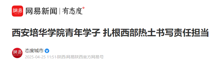 西安培华学院于在风起云涌的大革命时代诞生,在抗战烽火中升华,在共和国旗帜下成长,在改革开放浪潮中奋进,在新时代逐梦中图强。一代代培华人用救国之心、爱国之举、报国之情、兴国之梦、强国之志创建了培华昨天的辉煌,描绘了培华明天的希望。历史的接力棒又交到新一代培华人手上。迈步在中华民族伟大复兴征程上的培华青年用行动证明:选择基层不是选择平凡,而是选择成为时代的脊梁;扎根西部不是单向奉献,而是在广阔天地中实现人生价值的升华。这种双向奔赴,正是新时代青年最动人的姿态。