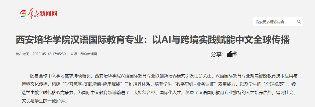 汉语国际教育专业拓展多元人才培养场景,贯通AI技术赋能、跨境实践强化、文化传播创新,对接“中文出海”战略需求,在数字化时代输送兼具技术实力与业务认证的应用型人才,为破解国际中文教育领域的技术与人才瓶颈提供了新思路。