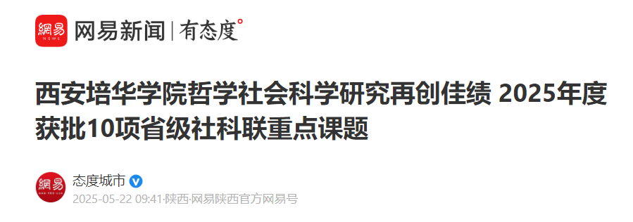 近日,陕西省社会科学界联合会正式公布2025年度哲学社会科学研究项目立项名单,西安培华学院以10项课题获批的佳绩实现历史性突破,立项总数及课题类别覆盖面均创培华社科研究新纪录。此次立项涵盖一般专项、青年专项、国际中文教育专项及社科著作出版资助项目四大类别,充分展现学校在哲学社会科学领域的综合研究实力与创新潜力。